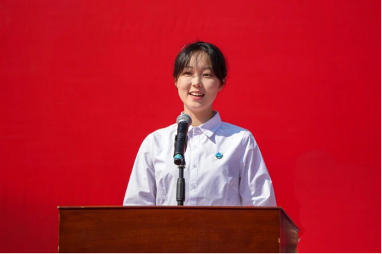 Li Xiang, representative of the instructors for the self-directed military training phase, a former soldier of the Navy of the Northern Theater Command of the Chinese People’s Liberation Army, and a student of the 2022 cohort majoring in Business Administration at the Sunwah International Business School, delivered a speech. Hao Zijia, a freshmen representative and majoring in Finance at the School of Finance and Trade, delivered a speech expressing the freshmen’s determination for the military training.