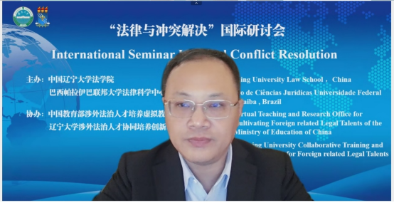 On November 8, 2025, the International Seminar Law and Conflict Resolution was held via video conference, jointly hosted by the Law School of Liaoning University and the Center for Legal Sciences of the Federal University of Paraíba in Brazil, and co-organized by the Virtual Teaching and Research Office for Cultivating Foreign-related Rule of Law Talents of the Ministry of Education of China and the Collaborative Innovation Base for Cultivating Foreign-related Rule of Law Talents at Liaoning University (LNU). Yan Hai, Vice President of Liaoning University attended the opening ceremony and delivered a speech.