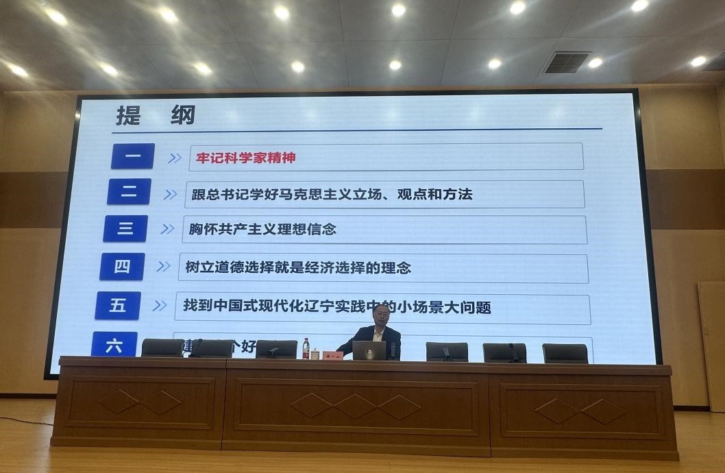 Secretary Pan structured his lecture around six key dimensions: “Upholding the Spirit of Scientists”, “Mastering Marxist Standpoints, Viewpoints, and Methods from the General Secretary”, “Cherishing Communist Ideals and Beliefs”, “Establishing the Concept that Moral Choices Are Economic Choices”, “Identifying Major Issues through Small Scenarios in Liaoning’s Modernization Practice”, and “Cultivating Ten Good Habits”.