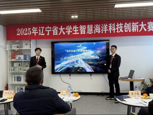 The Liaoning College Student Smart Ocean Science and Technology Innovation Competition is one of the innovation and entrepreneurship competition projects for higher education in Liaoning Province. It also serves as an academic exchange platform for innovation practices among universities, research institutions, and enterprises in the province. With the theme “Technology Empowers the Ocean, Innovation Leads the Future,” this year’s competition responded to the national “Marine Power” strategy and focused on the high-quality development demands of the marine economy. It attracted over 600 teams from 36 universities in the province, including Dalian University of Technology and Liaoning University, covering cutting-edge fields such as marine engineering, intelligent equipment, environmental monitoring, and big data applications. After institutional recommendations and provincial preliminary evaluations, 80 outstanding works advanced to the finals. Two projects from the university, “Submarine Cable Sentry System—A Silent Security Network Based on Distributed Fiber Optic Acoustic Sensing” and “Smart Blue Ocean—Water Quality Testing and Red Tide Risk Early Warning Platform,” comprehensively demonstrated their value through presentations and ultimately won first prizes.