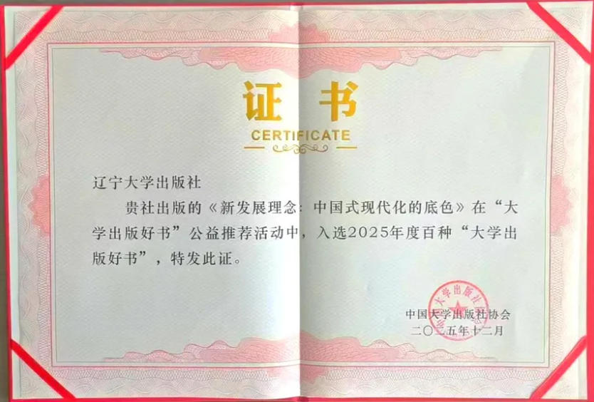 On December 13, the annual meeting of the China University Presses Association (CUPA) was held in Hangzhou. The inaugural “Excellent University Press Book” public recommendation campaign was launched during the conference, selecting one hundred “Excellent University Press Books” for the year 2025. The book, The New Development Philosophy: The Foundation of Chinese Modernization, authored by Yu Miaojie, was among the honored selections. Published by Liaoning University Press, the book previously earned a place on the “Excellent Books of Liaoning” list for the second quarter of 2025, and the August 2025 Best-Selling Books Chart of China Press, Publications, Radio, Film and Television Journal.