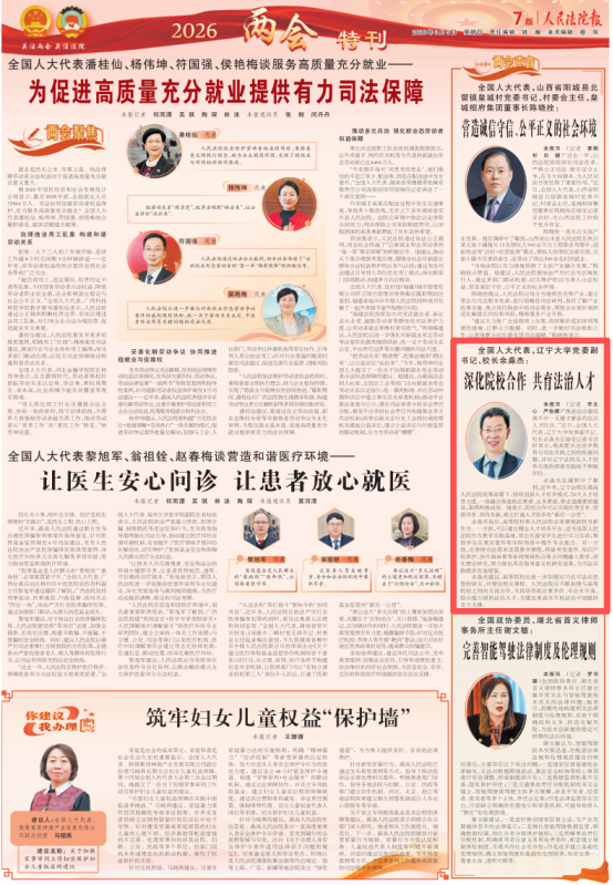“Advancing the development of the rule of law is inseparable from a team of competent legal talents with both moral integrity and professional ability.” Yu Miaojie, a deputy to the National People’s Congress and President of Liaoning University, stated in an interview with reporters that he pays close attention to the connection between legal education and judicial practice, and spoke highly of the exploratory practices of Liaoning courts in talent cultivation.