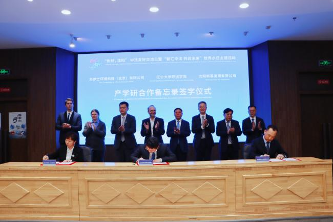 Representatives from the College of Environment of Liaoning University, Suez Environment Technology (Beijing) Co., Ltd. and Shenyang Xinji Development Co., Ltd. jointly signed a memorandum of industry-university-research cooperation.